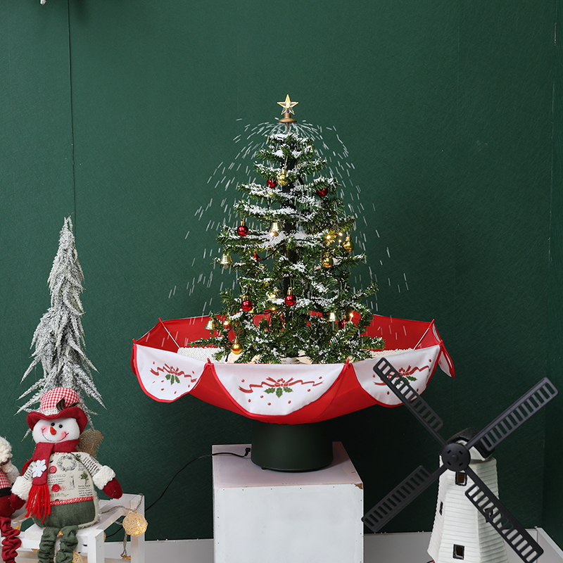 0.75m snowy xmas treecolor:red umbrella+green treelights:lights stripmusic:Xmasmusic